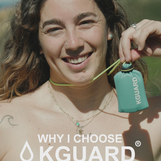 Use the long cord if you want to hang it around your neck and the short one if you want to tie it to your swimsuit or wetsuit. Check out the attached video to learn more about using KGUARD.